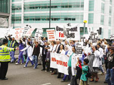 Most of the home-made posters told the story. One came from Mums4Juniors, another pleaded, “Support our training, Support your NHS”, a cruder one asked Patricia Hewitt to “kiss my MTass” – the target of the march was the government’s new system called Medical Training Application Service (MTAS).