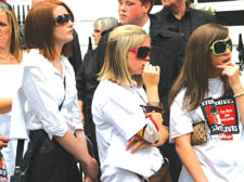 Ben’s purple coffin, decorated with a gold K, was carried out of the church to the Calvin Harris tune Girls.