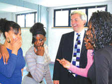 Chris Huhne meets young people at the Haven Youth Café: Rhianna Ramdeen, Zaynah Hajjaj-Brown, Lusamba Tshilumba, Koryn Ferdinand and Shanice Okolo
