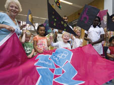 IT’S four years to go and these Olympics-mad youngsters are already counting. Children at Swiss Cottage Library played their part in the handover from Beijing to new host city London on Sunday afternoon, raising the iconic Olympic flag ahead of the London 2012 Games.