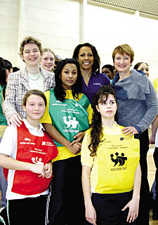 medallist Dame Kelly Holmes for a basketball challenge at Acland