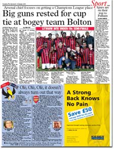 Arsene’s red army left red facede - WIGAN Athletic are in the Carling Cup final after captain Jason Roberts scored a fairytale 118th minute winner at Highbury on Tuesday, writes Tom Foot...more >>