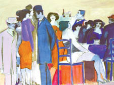 His style and figures in collage form seem heavily inspired by the work of the German Expressionist movement, Schneuer, admired too for his poster designs, taking great delight in observing humanity in the bustle of jostling crowds and, in particular, the female form.