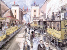 Britain led the world with the first proper railway passenger service when the Liverpool to Manchester line opened in 1830. It spread rapidly and within two decades there were 7,000 miles of line and a route through the spine of England, linking London with Birmingham, Liverpool and Manchester.